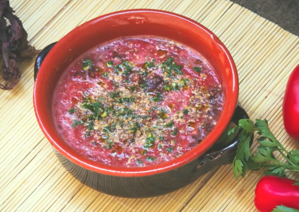 - Successivamente, preparate la parte liquida della zuppa. Iniziate tagliando grossolanamente i pomodori freschi. Metteteli in un frullatore insieme ai pomodori essiccati e al succo di limone. Frullate il tutto fino a ottenere un composto omogeneo.
