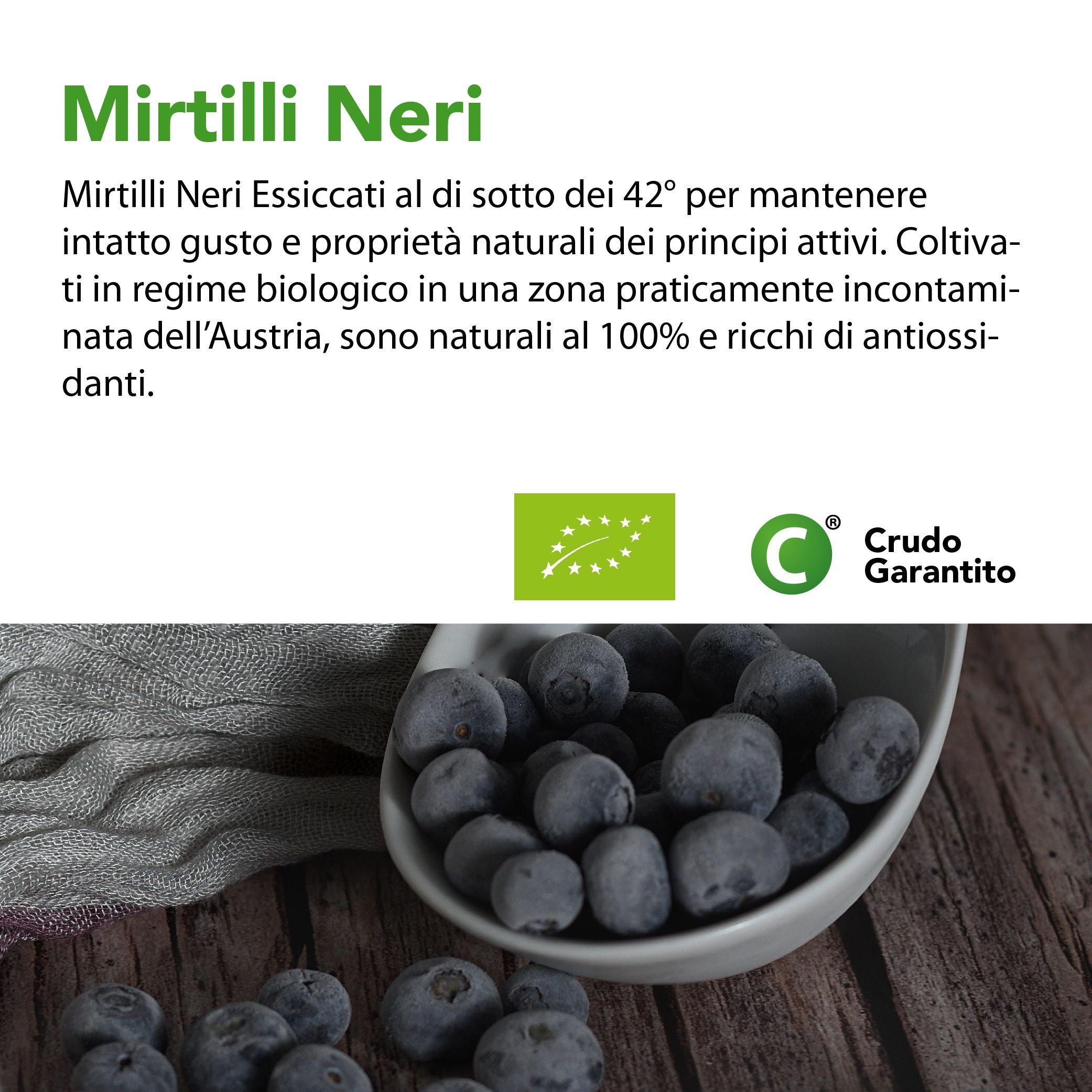 Mirtilli Neri disidratati Crudi E Bio
