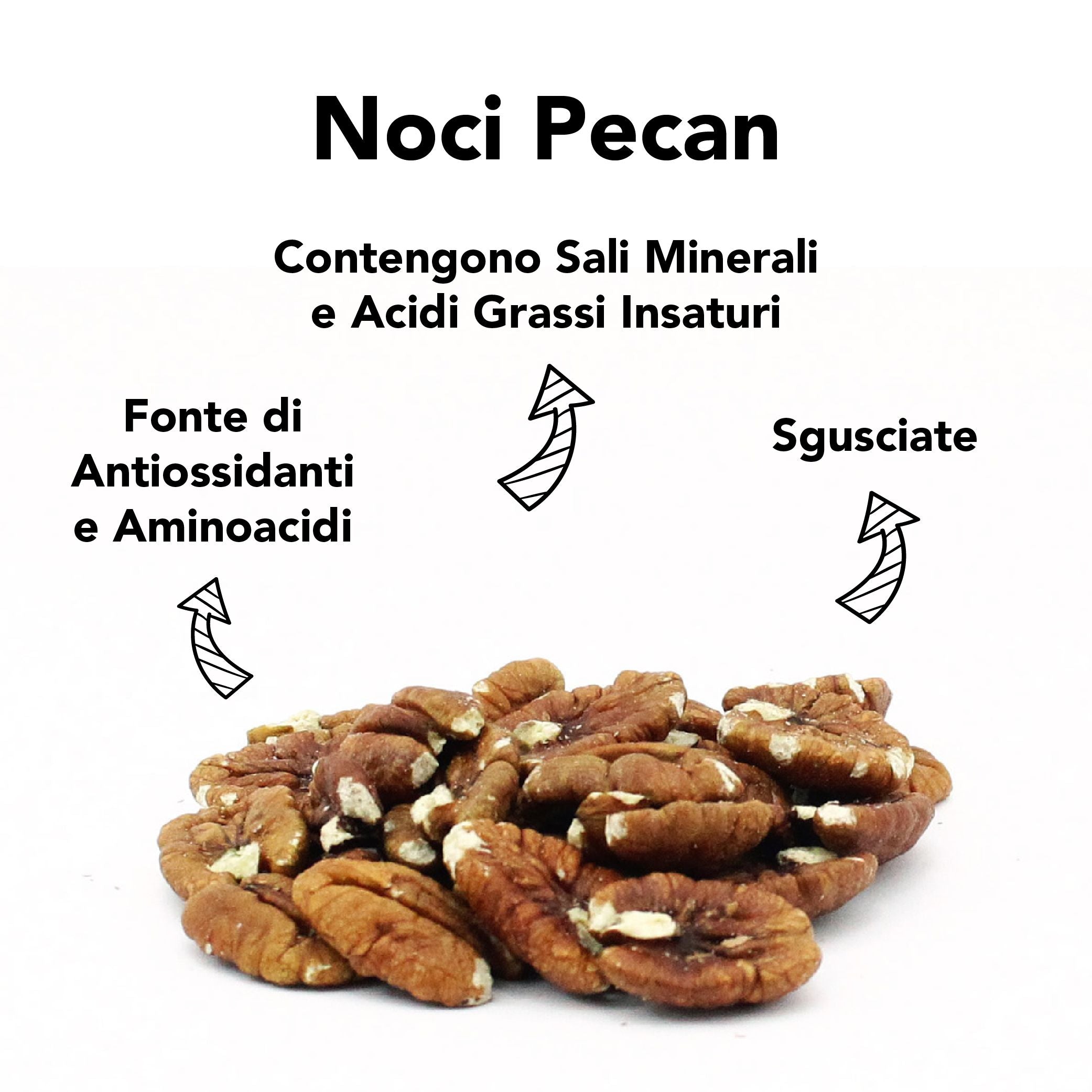 Le noci pecan sono il frutto della pianta scientificamente nota come Carya illinoinensis, appartenente alla famiglia delle Juglandaceae. Originarie del Nord America, queste noci erano un'importante fonte di cibo per le tribù indigene che abitavano quelle terre. Con il passare del tempo, le noci pecan hanno continuato a guadagnare popolarità, tanto che il governatore del Texas, James Stephen Hogg, ne promosse la coltivazione in tutto lo Stato americano, trasformando le noci pecan bio nell'albero emblema del Texas. Negli Stati Uniti, la coltivazione su larga scala di noci pecan bio è iniziata verso la metà del 1800. Ad oggi, gli USA sono i maggiori produttori di noci pecan sgusciate, con il 90% della produzione mondiale stimata in 150.000/200.000 tonnellate all'anno, prodotte da 10 milioni di alberi.